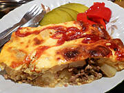 Wczorajsza zupa ogórkowa z ziemniakami, na drugie zrobiłam wielkiego gołabka w keksówce (kombinacja tego co bylo w lodowce) i ziemniaki + sos pomidorowy.