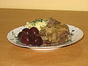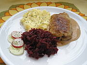 Dziś u nas karczek w sosie musztardowym, surówka z czerwonej kapusty z jabłkiem i tłuczone ziemniaczki
