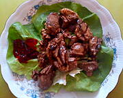 Bardzo prosto - obsmażam na mocnym ogniu wymoczoną w mleku wątróbkę drobiową (max 10 min - jest super miękka i lekko różowa w środku). Solę na końcu. I albo podaję z cebulką i jabłkami, albo tak jak dziś - mus lub konfitura malinowa plus sos balsamico (nie ocet, a sos). Warto spróbować:)