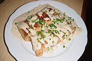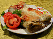 Takie... naleśniki zapiekane pod beszamelem. W środku pieczarki, cebula, czosnek odrobina emmentalera i broccoletti.