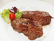 Schab duszony w sosie pomidorowym z czerwonym winem.