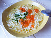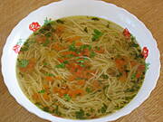 Wczorajszy rosol z makaronem, racuchy z jablkami.