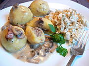 Dziś: dokładnie to samo z tą różnicą, że z ziemniaczków pozostałych z wczorajszego obiadu zrobiłam kluski śląskie.