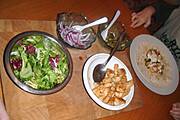 dla Susła ogórkowa, dla mnie rosół a na II danie koperty z ciasta francuskiego z farszem "nawinie" oraz sałata