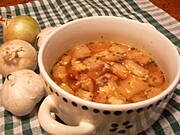 Zupa czosnkowa z grzankami i żółtym serem + ryż z jabłkami wg janeczki ( skusiłyście mnie na ten ryż tymi komentarzami:):):))....właśnie wstawiłam go do pieca :)