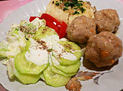 Turlany i masowany przez chwilę to i się uformował ładnie (chyba najładniejsze jakie mi do tej pory wyszły:)), a surówka z kapusty, marchewki, pora i zielonego ogórka.