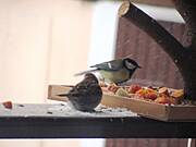 , ale tak trudno zrobić im ładne foto, bo też jak tylko się zbliżam uciekają. A karmnik wystawię gdzieś na drzewo, bo tak strasznie brudzą na tarasie, że szok.