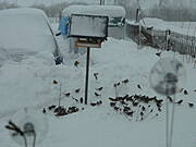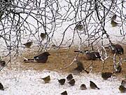 Na Kurpiach też karmią, bo zima sroga. 10 kg słonecznika na tydzień - dla sikorek i innego drobnego ptactwa, pszenica - dla bażantów i gołąbków. Karmimy je na naszej działce ogrodowej.