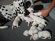 Moi kochani, mam parę dalmatyńczyków, i w tym roku miały pierwszy raz młode. Jeden szczeniak okazał się brązowy brązowy i zostawilismy go. To nasza kochana Leda która jest w domu. Rozrabia niemiłosiernie ale jest kochana. Mam tylko problem z jej podgryzaniem naszych dłoni. Oczywiście czytałam na różnych forach jakz tym walczyć ale może ktoś może ma jakiś swój sposób na to. Leda jest już 5-miesięcznym psem, jest dość silna i coraz trudniej dac jej radę, szczególnie córce. pomóżcie.tu Leda jak miała 1,5 miesiąca