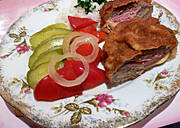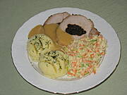 Niedziela: Zrazy wieprzowe zawijane z sosem z pieczenia, ziemniaki, surówka koperkowa.
