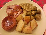 U nas dzisiaj " roast sunday" - pieczony schab, pieczone ziemniaczki, gotowane na parze warzywka, yorkshire pudding i sos.