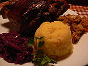 Golonka miodowo-piwna wg NR,kapusta czerwona też w NR,kapusta pekińska na ciepło wg AgaMaria + ziemniaki ....