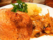 Dzisiaj były udka pieczone na kiszonej kapuście i do tego ziemniaki faszerowane po wiejsku z przepisu Mlodej. Pycha!
