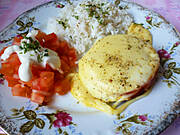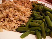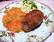 U mnie pierś z kurczaka, ziemniaki i marchewka z groszkiem. Chociaż jakby była sama marchewka z groszkiem w ilości całej reszty to by  było jeszcze pyszniej :)