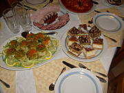 Przyznam się do małego "matactwa". Zdjęcia langusty i homara wykonałem u moich przyjaciół we Francji (nad samym oceanem) kilka lat temu. Osobiście uczestniczyłem w przyrządzaniu tych rarytasów. Był to  fragment kolacji wydanej na moją "cześć" w rewanżu za wcześniejszą polską, zaserwowaną i przygotowną przeze mnie. Zdjęcia te dodaję w "zastępstwie" ponieważ moje obecne obiady (odchudzam się) są tak mało atrakcyjne i monotonne, że wręcz nie wypada mi ich tutaj pokazywać...;).
