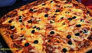 Dzisiaj- pizza z boczkiem, pieczarkami i cebulą.