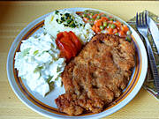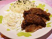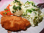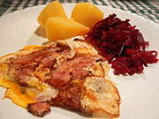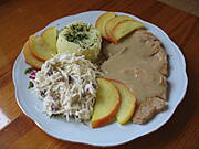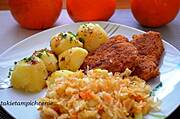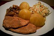 dziś i jutro ziemniaki, karczek duszony w plastrach i surówka z kiszonej kapusty