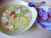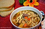 Krupnik " szpitalny", na drugie pulpety w jarzynach z makaronem.
