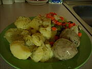 U nas wczoraj i dziś ziemniaczki z koperkiem, duszona kapusta z grochem, surówka z lodowej z... (sprzątanie w warzywniku), i udka z jarzynowym farszem MNIAM