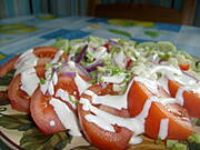 U nas dzisiaj obiad do wyboru:) Mumia z kurczakiem serem i dymką i sałatka z pomidorów, lub tłuczone ziemniaczki z koperkiem, gołąbki z mięsem w sosie pomidorowym nowa produkcja, ogórek kiszony. Do picia herbata z cytryną i sok z czarnej porzeczki.