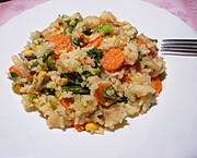 Nastąpiła mała zmiana, zamiast pierogów z zamrażarki, zrobiłam ryż z warzywami i masłem, wszyscy zjedli ze smakiem:)