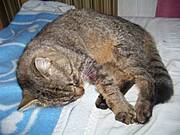 Kot ma ładna sierść.Widać,ze wyjdzie z tego.Daj mu się wyspać, jakies jedzonko kocie, wodę i kuwetę.Koty wbrew pozorom, to silne zwierzaki.Żeby nie zdzierał opatrunku załóz mu kołnierz!