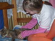 Byliśmy dzisiaj u weterynarza u Gacusia.Za godzinę ma zabieg usunięcia całej łapki.Gdy podeszliśmy do jego klatki to leżał osowiały,wołaliśmy go a on nic,dopiero jak otworzyliśmy klatkę i zaczeliśmy go głaskać to jak by nowe życie w niego weszło.Wychodził z klatki,na ręce nam wchodził,co było trochę trudne bo miał kroplówke podłączoną na drugiej łapce.Mruczał,wariował,po prostu cieszył się całym sobą,że nas widzi.Po zabiegu gdy jeszcze będzie w narkozie będzie miał sprawdzane jelita,bo do chwili obecnej jeszcze się nie wypróżnił.Mamy nadzieje,że do poniedziałku wszystko będzie w porządku i pójdzie do domu.Trzymajcie za Gacusia mocno w kciuki.