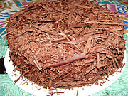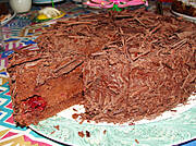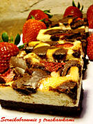 Sernik z trzech serow; bialy, serek kremowy typu philadelphia oraz cottage cheese (nieznalazlam tlumaczenia) na ciescie czekoladowym z dodatkiem skorki pomaranczowej.