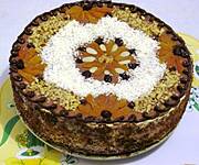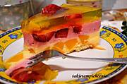 Sernik z musem brzoskwiniowym zamknięty w biszkopcie zalanym galaretką z anansem i mango ))) Ciasto do skopiowania w pieleszach domowych . Smakuje wyśmienicie a prezentuje się .. sami ocencie ))