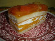 Sernik z musem brzoskwiniowym zamknięty w biszkopcie zalanym galaretką z anansem i mango ))) Ciasto do skopiowania w pieleszach domowych
