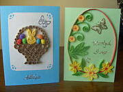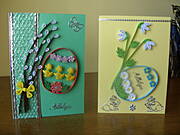 Śliczne karteczki. Ja się zabieram do jajek quillingowych, jak znajdę trochę czasu. Powiedz, gdzie kupiłaś te srebrne i złote ozdóbki? Czy one są naklejone?
