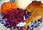 Remanenty poświąteczne. Rosół z domowym makaronem, pieczone udka z kaczki z pyzami poznańskimi,marchewką i modrą kapustą.