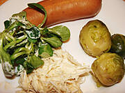 Zupa kalafiorowa ,kluski śląskie smażone,surówka z marchewki i jabłka z chrzanem ,sałata lodowa z sosem czosnkowym ....
