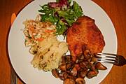 Ziemniaki,schabowy tym razem z kością ,marchewka,pieczarki majonezowe i buraczki z majonezem i czosnkiem ...