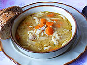 Niedziela: rosół z makaronem, kotlety z piersi indyka faszerowane serem i pieczarkami, mizeria, kompot z gruszek