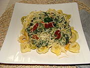Wczoraj wtorkowe wspomnienia, dzisiaj tortellini i szpinak z suszonymi pomidorami w sosie serowym.