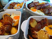 Wczorajszy zurek z ziemniakami, na drugie nalesniki zapiekane z kielbaskami i serem zoltym.