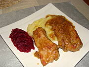 Udka gyros, kluski kładzione i buraczki (dla miłośników z chrzanem). Kompot z jabłek i winogron.