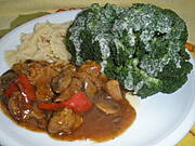 Gulasz z karkówki z jarzynami , farafalle i brokuł w beszamelu z nutą pomarańczy ))