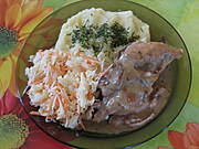 Bolońska karkówka,ziemniaki,surówka z kiszonej kapusty.