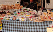 owoce..warzywa...słodycze...no i ryby:) wszystko tak kolorowe że aż sie prosi żeby kupić...a najlepsza jest ta mała przekupka z tą sliczną srebrną torebusią;)