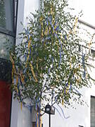 I jeszcze majowy '' rarytas '' brzózka , pięknie ozdobiona kokardkami przed domem ukochanej mówi ,że '' kawaler z serca miłuje i ma poważne zamiary '' . Hmm dom lubej za moimi plecami a tło no cóż tak wyszło w kadrze :))))