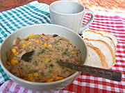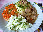 w formie potrawki z dodatkiem kukurydzy i ogórka kiszonego (wg eNki) + pieczywo ...