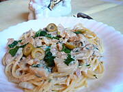 Spaghetti z pieczarkami i tuńczykiem w sosie śmietanowym ...