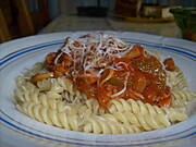 U mnie bedzie makaron pełnoziarnisty z sosem z zołądków indyczych (chyba pomidorowym)