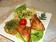 Filet z kurczęcia w ziołach,ziemniaki, sałatka z buraczków czerwonych ze słoika (produkcja własna).