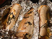 Filet z kurczęcia w papirusie,ziemniaki,szpinak,surówka meksykańska.