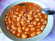 Dzisiaj późna obiadokolacja, reszta wczorajszej fasolki i pizza z kawałkami wieprzowiny, cebulą , serem, pieczarkami i szynką.