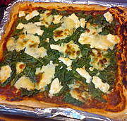 Pizza ze świeżym szpinakiem, bryndzą i fetą.