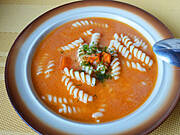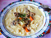 Wczoraj a'la gulasz z indyka, z ziemniakami lub korniszonami, dzisiaj pomidorowa z makaronem.